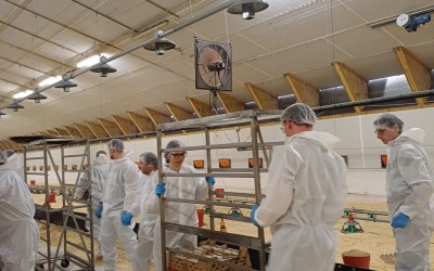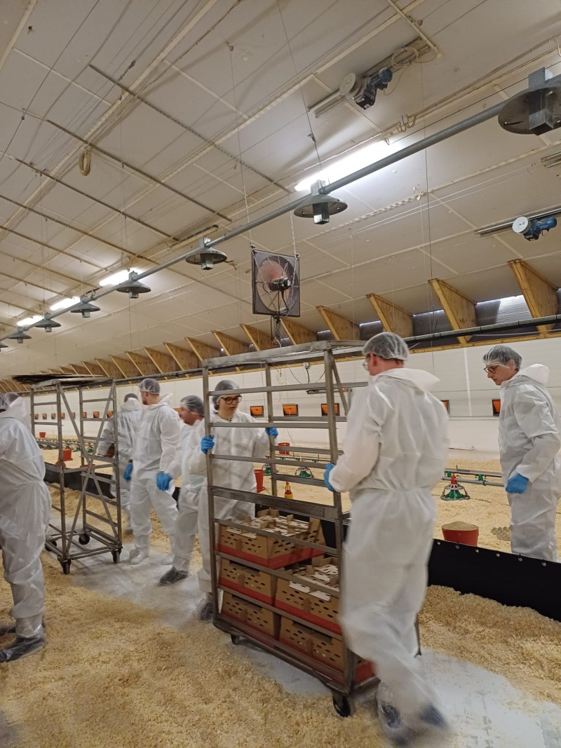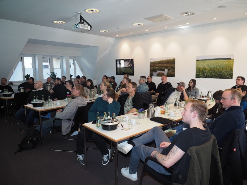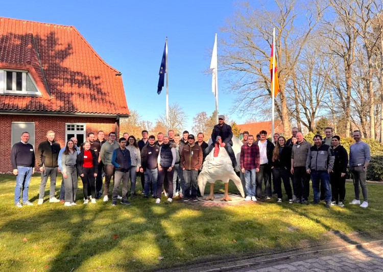 09.03.2026 - Unser jüngstes Putenseminar fand vom 3. bis 5. März 2026 statt. 31 Teilnehmer aus ganz Deutschland trafen sich in Kartzfehn, um Fachvorträge über u. a. Kükenaufzucht sowohl in Ringen als auch ohne, Vorbereitung des Stalls inkl. Reinigung und Desinfektion, Stallmanagement, Putenkrankheiten sowie der Verladung von Schlachtputen zu hören. Abgerundet wurde das theoretische Programm mit Exkursionen in die Brüterei, ins Labor hinterm Esch und schlussendlich in den Putenstall, bei der die motivierten und engagierten Seminarteilnehmer das Farmteam tatkräftig bei der Kükeneinstallung unterstützten.