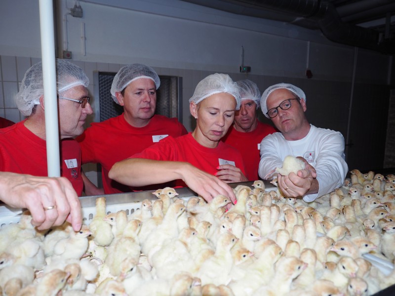 Neben Silvia Breher und Thomas Storck waren Gernot Kuhlmann (Vorstandsmitglied des VdP) sowie Vertreter von Fach- und Lokalpresse dabei. Der Tag begann mit einer Führung durch die Kartzfehner Brüterei. In der anschließenden Diskussionsrunde machten Storck und Kuhlmann die Sicht der Branche zu den Themen Immissionsschutz, internationale Wettbewerbsfähigkeit, Preispolitik, Antibiotikaeinsatz, Tiertransportzeiten und Düngeverordnung deutlich. Schnell waren sich alle Gesprächsteilnehmer einig, dass es mittelfristig nur ein verpflichtendes Tierwohllabel geben kann.