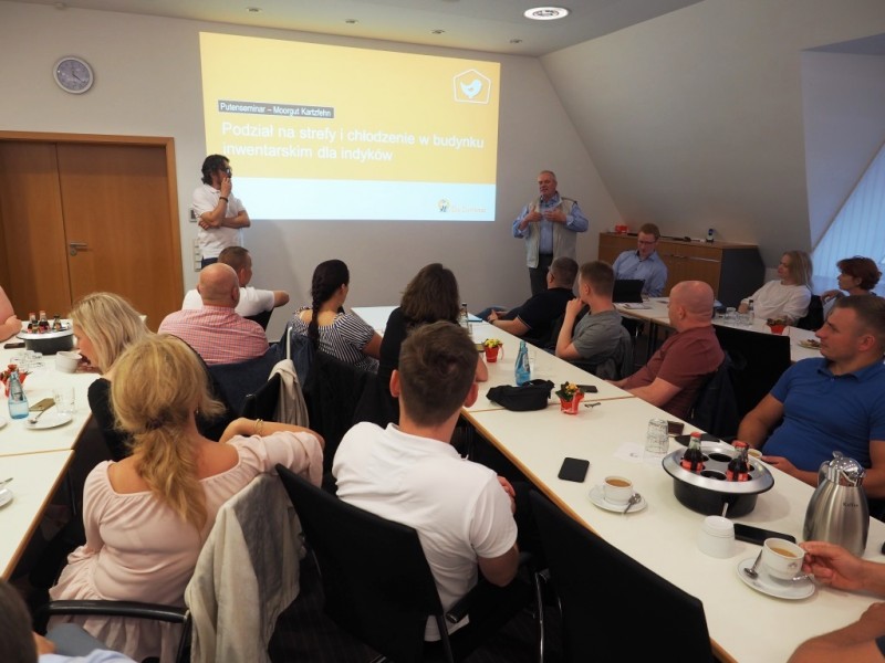 27.06.2019 - Od 11.-13.06.2019 r. 27 hodowców indyków z Polski przyjechało do Kartzfehn na seminarium. Po zwiedzeniu pierwszego dnia wylęgarni Kartzfehn hodowcy, w ramach szkolenia, uczestniczyli w wykładach dotyczących „Podstaw i specjalistycznych zagadnień na temat zdrowia indyków” prowadzonych przez specjalistę ds. drobiu, dr. Med. Wet. Anetę Dullweber. Odwiedzono również praktykę weterynaryjną z laboratorium w Garrel, gdzie część teoretyczna została pogłębiona w praktyce.